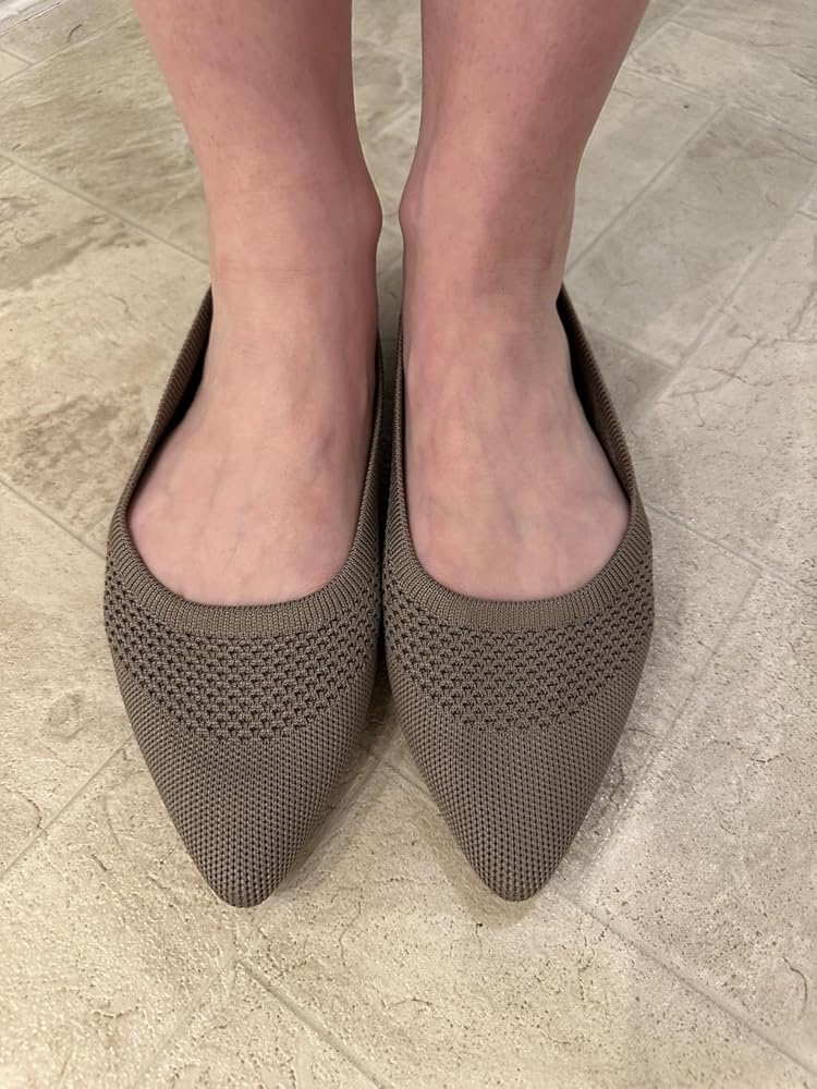 These knit point-toe flats are a great option if you want something that looks polished but feels closer to wearing slippers. The fabric upper is soft and flexible, so there’s no stiff break-in period, and they feel lightweight on your feet right away.I really like how breathable the knit material is. My feet didn’t feel overheated after wearing them for several hours, which is a big plus compared to traditional flats that can feel stuffy. The slight wedge gives just a bit of lift while still keeping the shoe comfortable for walking and standing.Style-wise, the pointed toe makes them look dressy enough for work or nicer outfits, but they’re still casual enough for everyday wear. They also slip on easily and stay on securely without feeling tight.The cushioning is decent for light to moderate wear, though if you’re on your feet all day, you might want to add a thin insole for extra support. Sizing felt true to size for me, but those with wider feet may notice the pointed toe is a bit snug at first.Overall, these are versatile, comfortable flats that balance style and ease really well. They’re perfect for work, travel, or everyday errands.